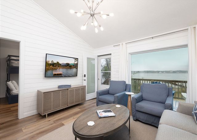 combination tub/shower, double, king, toilet, twin/ single, churches, cinemas, festivals, library, marina, museums, playground, recreation center, restaurants, theme parks, water parks, zoo, Dining, Television, Air Conditioning, Clothes Dryer, Heating, Internet, Iron & Board, Linens Provided, Living Room, Towels Provided, Wifi, Coffee Maker, Dishes & Utensils, Dishwasher, Kitchen, Microwave, Oven, Refrigerator, Stove, Toaster, ATM/bank, fitness center, groceries, hospital, medical services, Near The Ocean, Water View, Waterfront, Balcony, Deck / Patio, Lawn / Garden, Outdoor Grill, bedroom, fishing, golf, pier fishing, children welcome, non smoking only, pets considered, Long-term Renters Welcome, Minimum Age Limit for Renters, flexible, recommended, Guests provide their own meals, Adventure, Outdoor lighting, Deadbolt lock on entryway, Smoke detectors, Carbon monoxide detector, Fire extinguisher, First aid kit, Enhanced cleaning practices, Clean with disinfectant, No-contact check-in and check-out, High touch surfaces cleaned with disinfectant, Towels and bedding washed in water that's at least 60sC/140sF, Minimum time between stays, 1 day (24 hours), 2 days (48 hours), 3 days (72 hours)